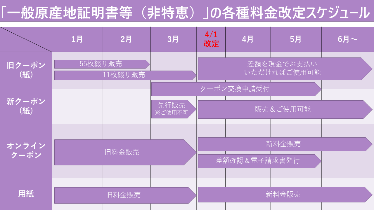 - 原産地証明書用紙の価格改定のお知らせ