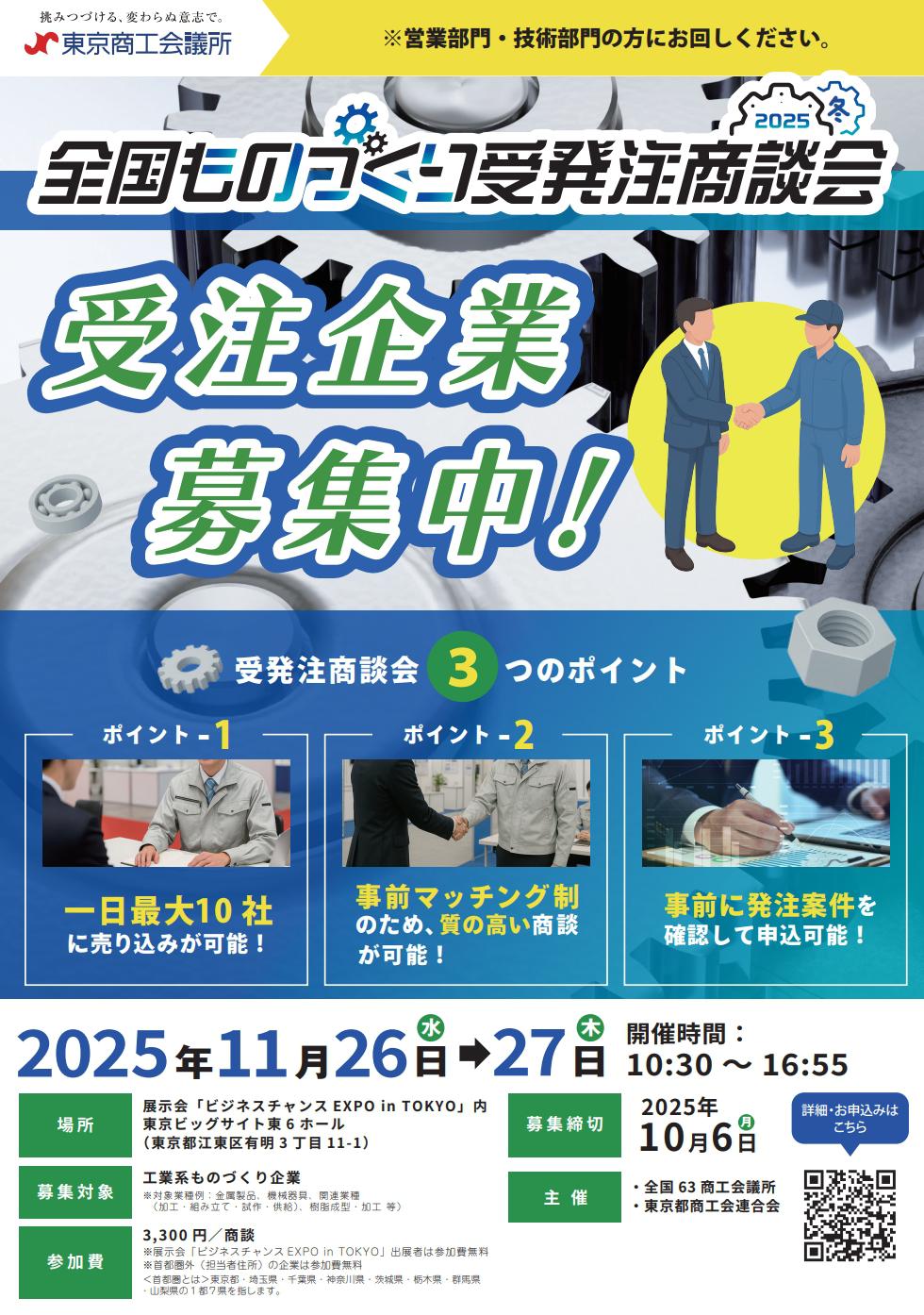 申込方法 | 東京商工会議所「全国ものづくり受発注商談会 公式ページ」からお申込みください。 |