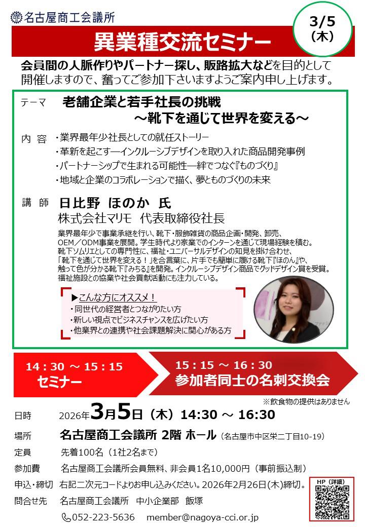 | 参加費 | 名古屋商工会議所会員無料、非会員1名10,000円(事前振込制) |
