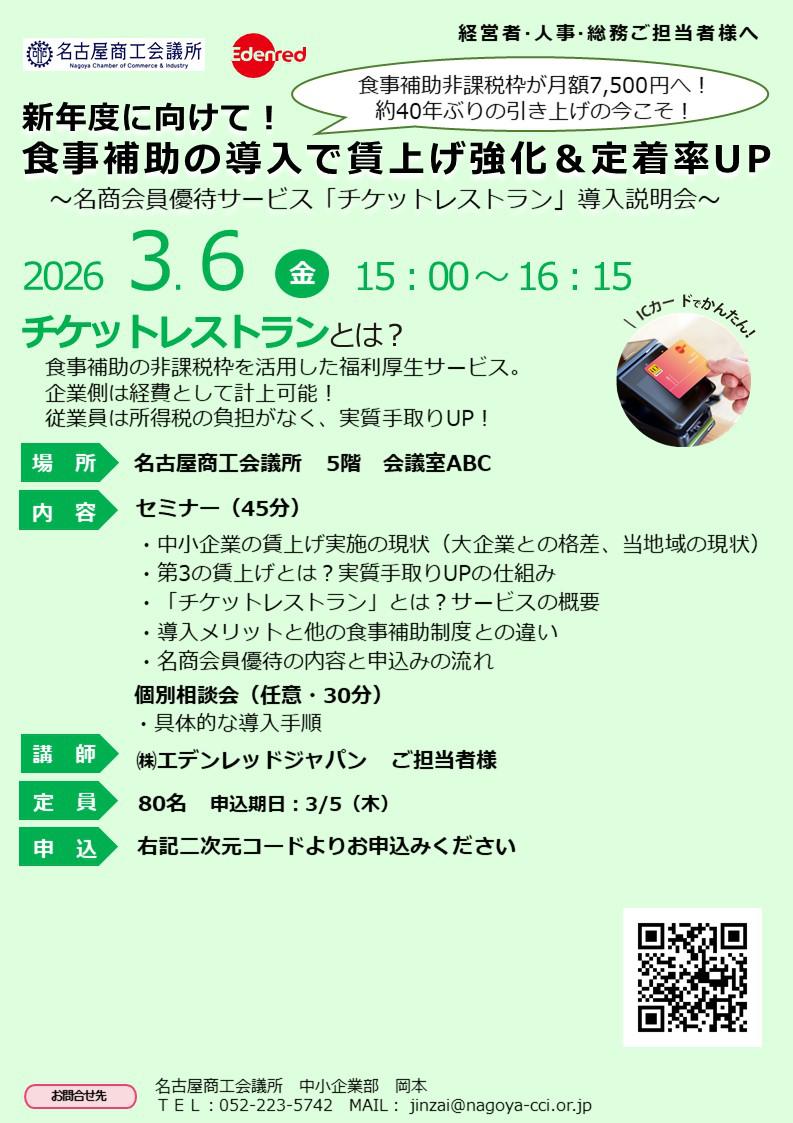 新年度に向けて!食事補助の導入で賃上げ強化&定着率UP~名商会員優待サービス「チケットレストラン 」 説明会~