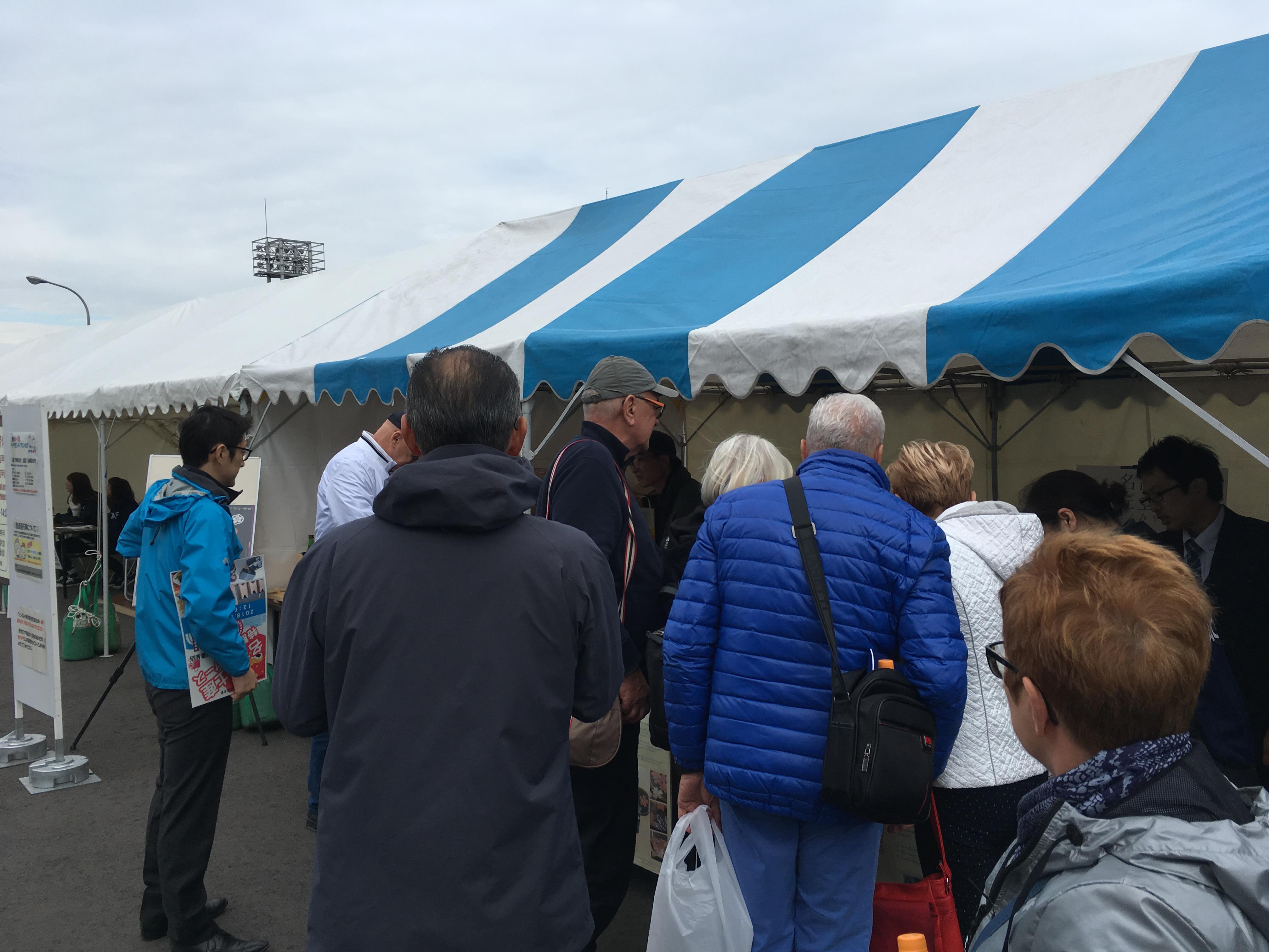 岸壁では、県内の観光案内や無料Wifiスポットなど、3,800名を超える乗船客・クルーへおもてなし事業が実施され、名古屋土産や食料品などを販売する物販ブースには、お土産を求める日本人や台湾人などの乗船客で賑わい、出展者からは「インバウンド向けの商品がよく売れた。また出店したい。」といった声が聞かれました。