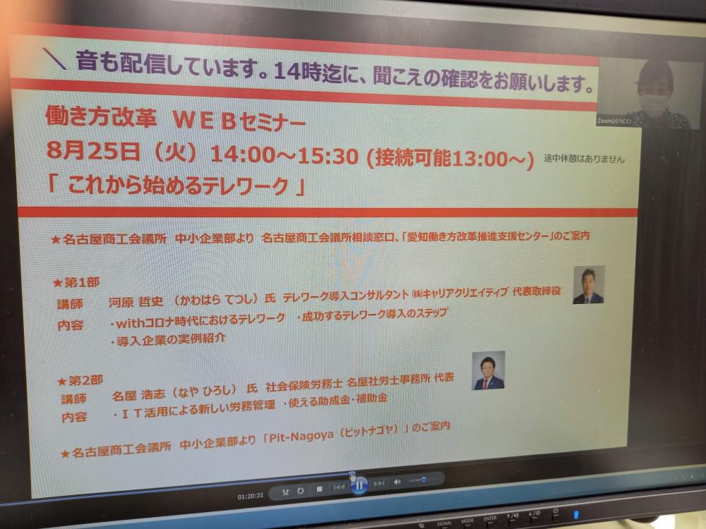 これからテレワークを始めようとお考えの経営者および担当者を対象に、zoom(ズーム)を使用し、下記の内容でオンラインセミナーを開催しました。参加者54名。