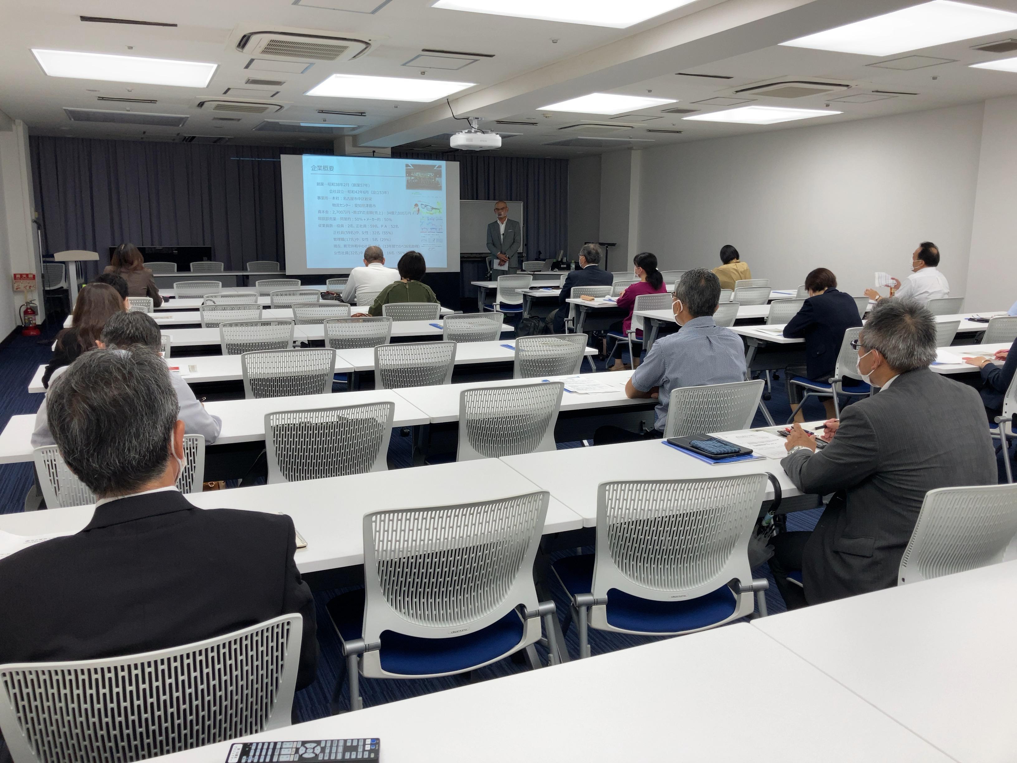 「働き方改革!シリーズ講演会」名古屋眼鏡㈱の事例発表を名古屋商工会議所3階第1会議室にて開催しました。(参加者22名)