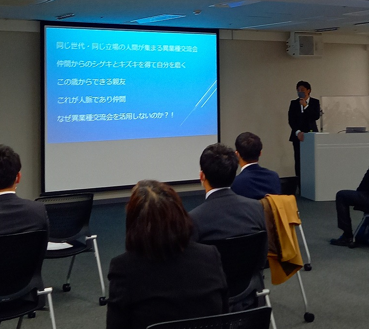 今回のテーマは「ネットワーキング」。第1部はセミナー、第2部は参加者相互の名刺交換会という構成で合計60分間。名古屋商工会議所5階会議室ABCにて。参加者47名。