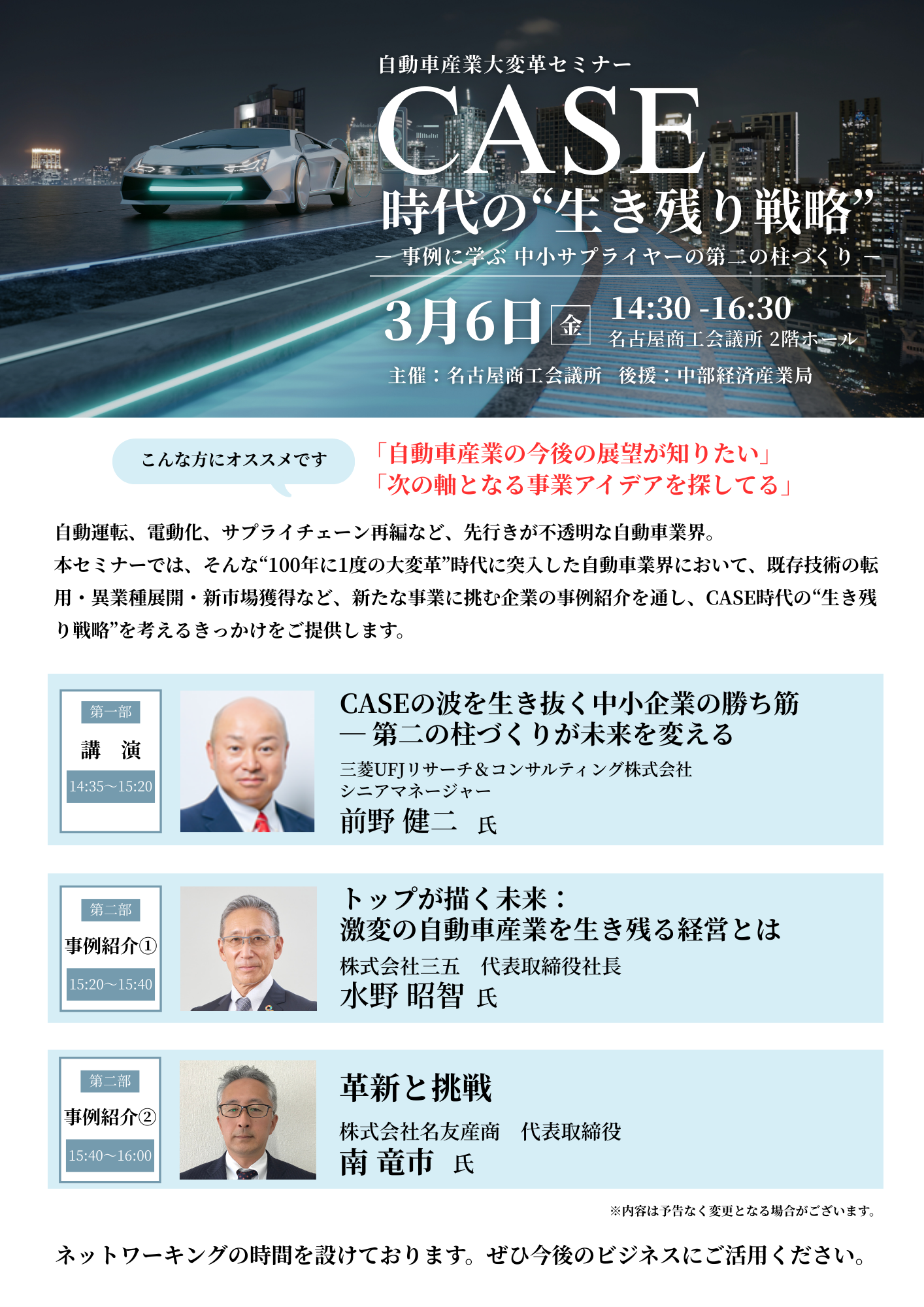 激変のCASE時代を生き残るための経営戦略や考え方をお話しいただきます。